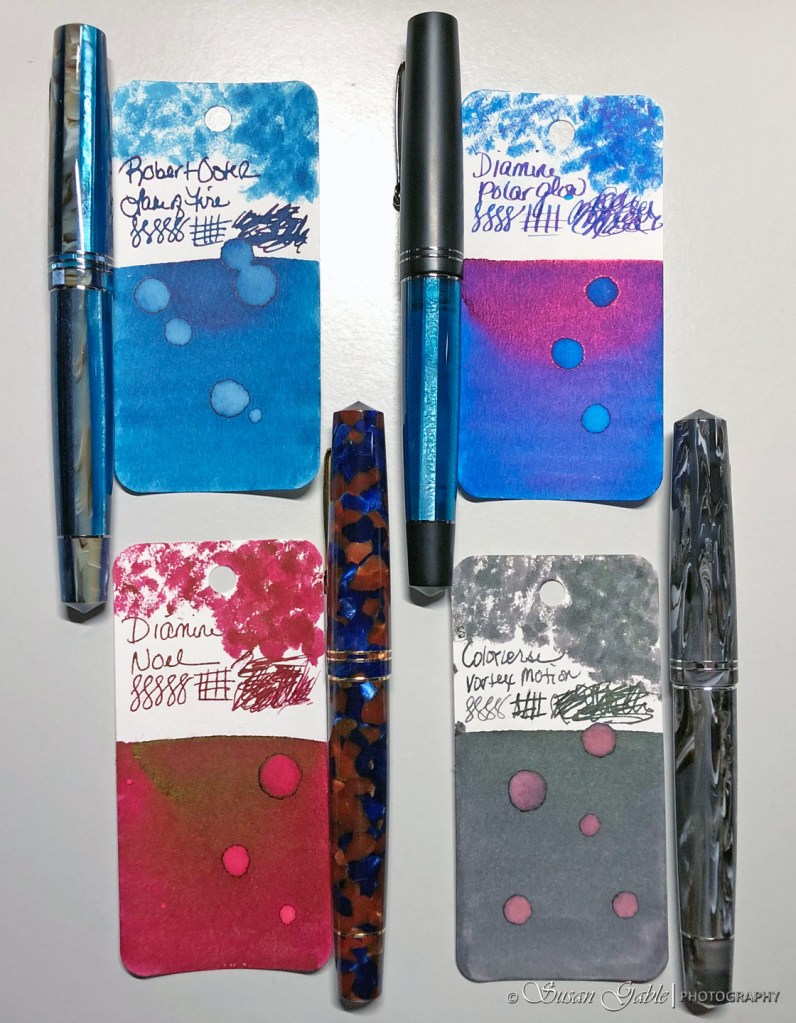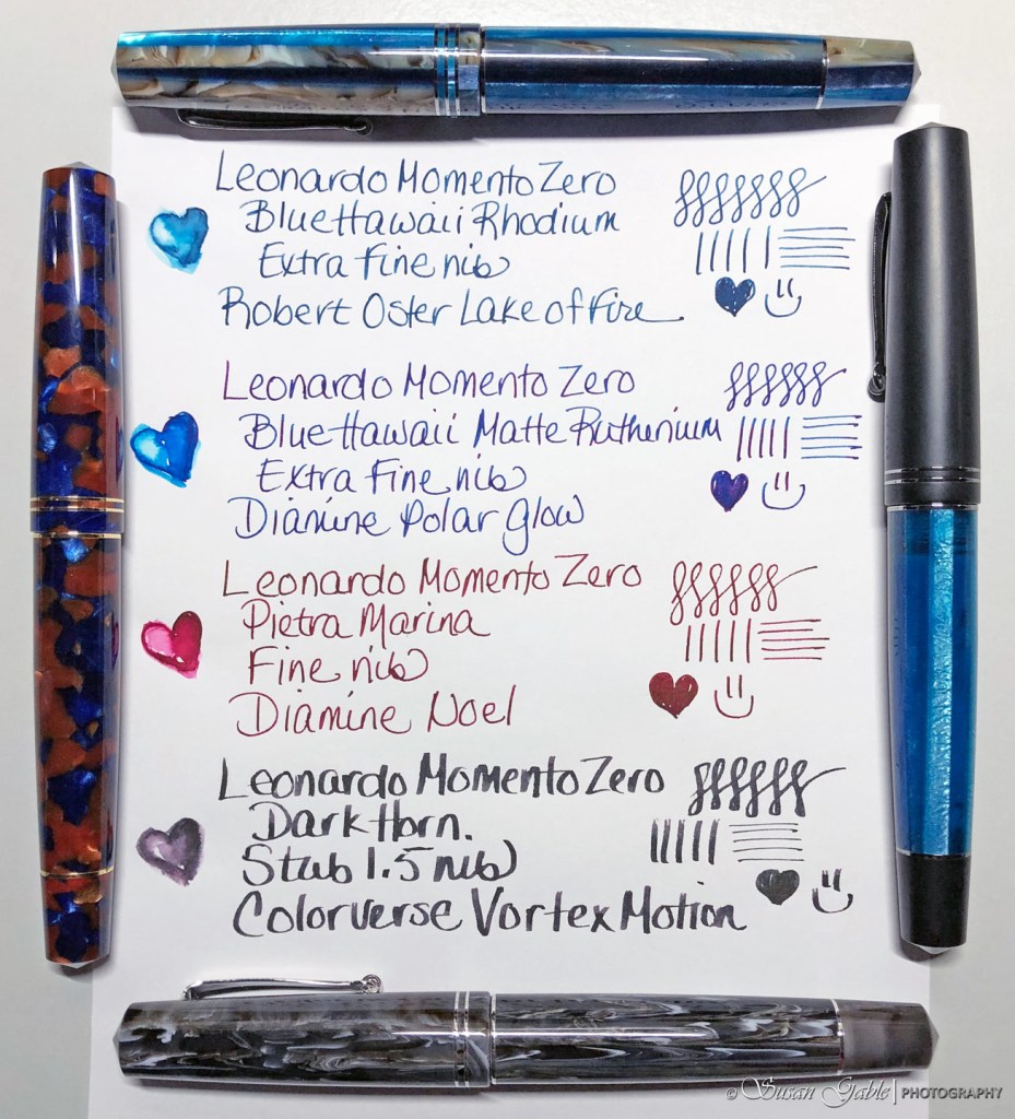 Another few weeks passed and I saw a new version of Blue Hawaii in Matte Black with Ruthenium trim (another exclusive pen) and nabbed an extra fine nib. I filled that pen with Fire and Ice. My fourth Leonardo in Pietra Marina showed up with a fine nib. That pen was filled with Australian Syrah. Yes. A pattern to my rabbit-hole madness.