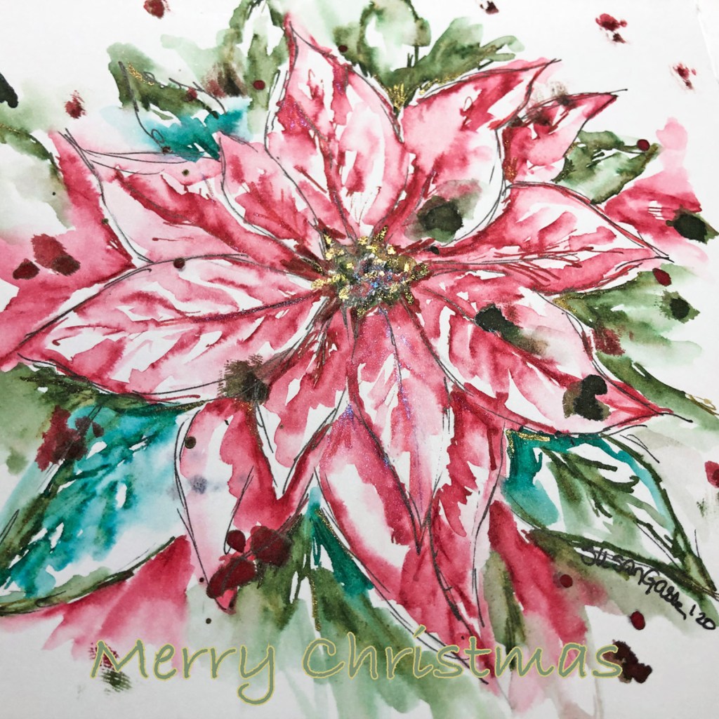 That’s my poinsettia sketch I managed to get done yesterday. I did a quick outline sketch using my Platinum Preppy 02 EF filled with Platinum Carbon ink. I used my TWSBI GOs and went over a few lines of the leaves using my favorite Robert Oster Signature inks: Red Candy, No Fixed Address (can see the subtle blue shimmers), Peppermint, Eucalyptus Leaf, and Heart of Gold (gold shimmers of course). I did add a bit Diamine Golden Ivy to outline the green leaves with a bit of golden shimmers.