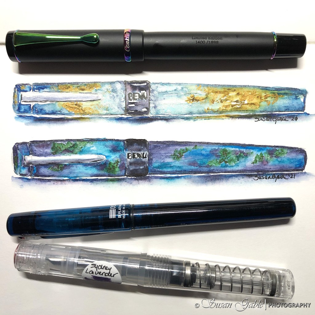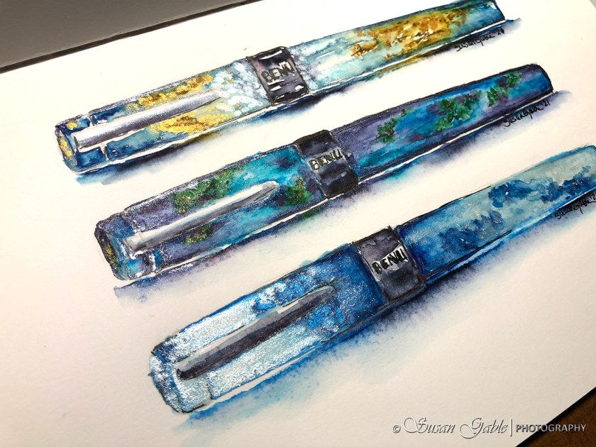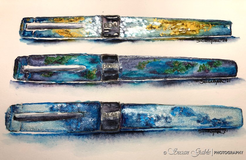 Pens used: Conklin Endura Abalone with JoWo Omniflex nib. Platinum Prefounte 05 Medium nib. TWSBI GOs with Stub 1.1 nibs