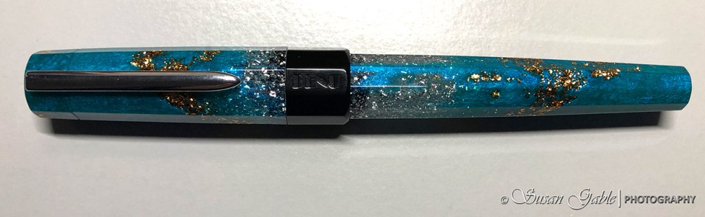 Some of you might remember I received my first Benu as a Christmas gift from my Hubby. I fell in love with the beautiful colors of my Bora Bora. The turquoise tropical blue color with silver and gold shimmering particles reminded me of the Caribbean. The medium nib writes smooth and wet and handles shimmering inks beautifully.
