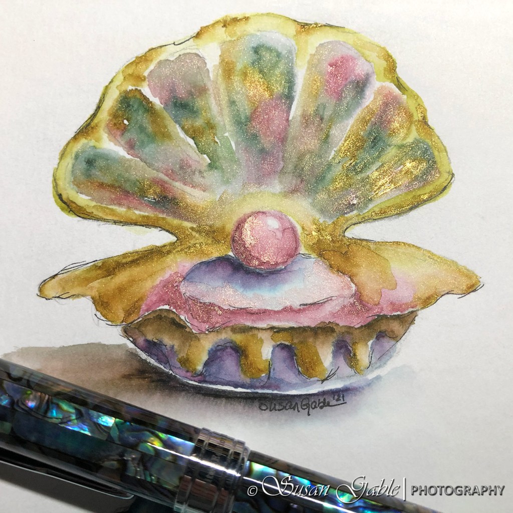 Inks: Jacques Herbin Vert Atlantide. Robert Oster Rose Gold Antiqua, Heart of Gold, Sydney Lavender, Saguaro Green, Melon Tea, and Thunderstorm
