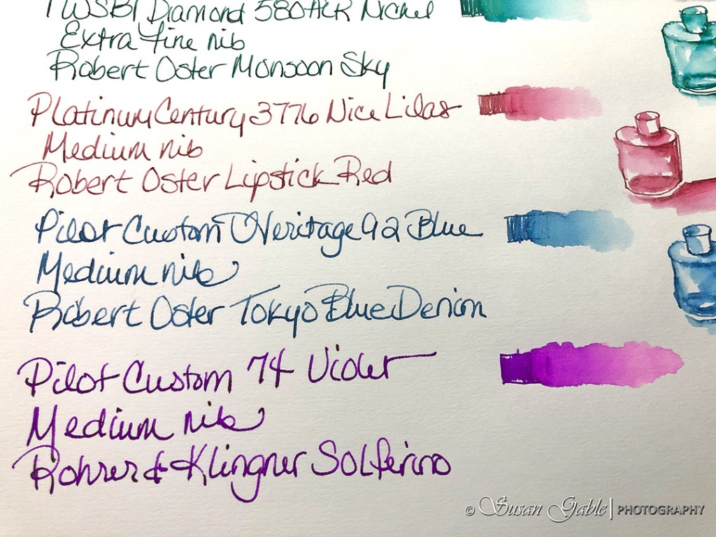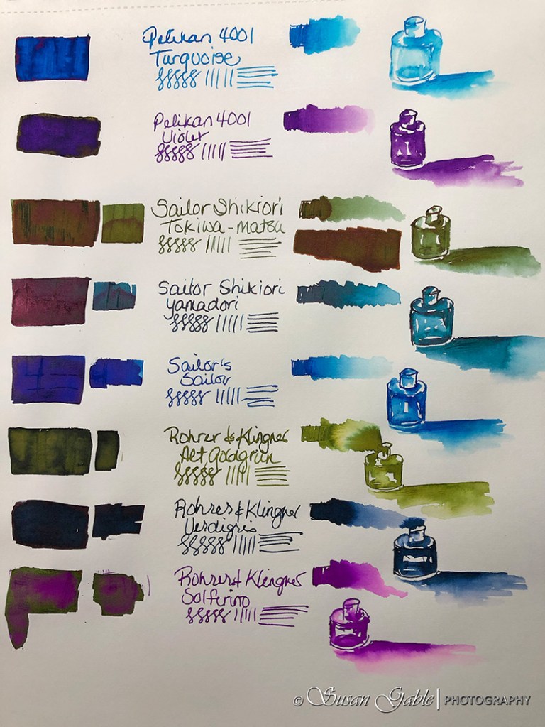 For my first page I grabbed my EDW or every day writers and art fountain pens and started a pen & ink log. I wanted to see how my fountain pen inks reacted to this paper and how well the variety of nibs wrote on this paper.