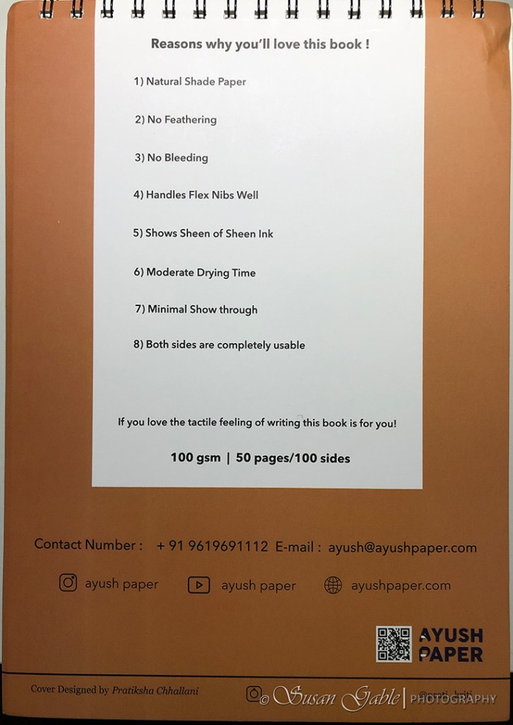 I received an A4 pad of spiral bound paper. The pad came with 50 sheets or 100 usable sides. The paper weight is 100 gsm. The paper color is called “natural shade” and appears to be slightly off white in color.