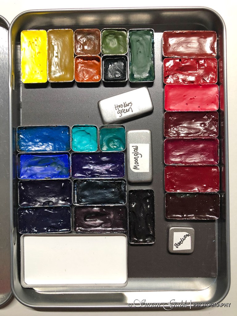 I realized I needed a larger metal palette case to hold my frequently used watercolor pans.