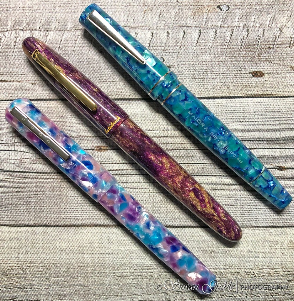 I wanted to include a picture that shows my Esterbrook Estie OS and my lovely Maiora together. They are both “over sized” pens and look somewhat girthy, but they are extremely comfy pens to write with.