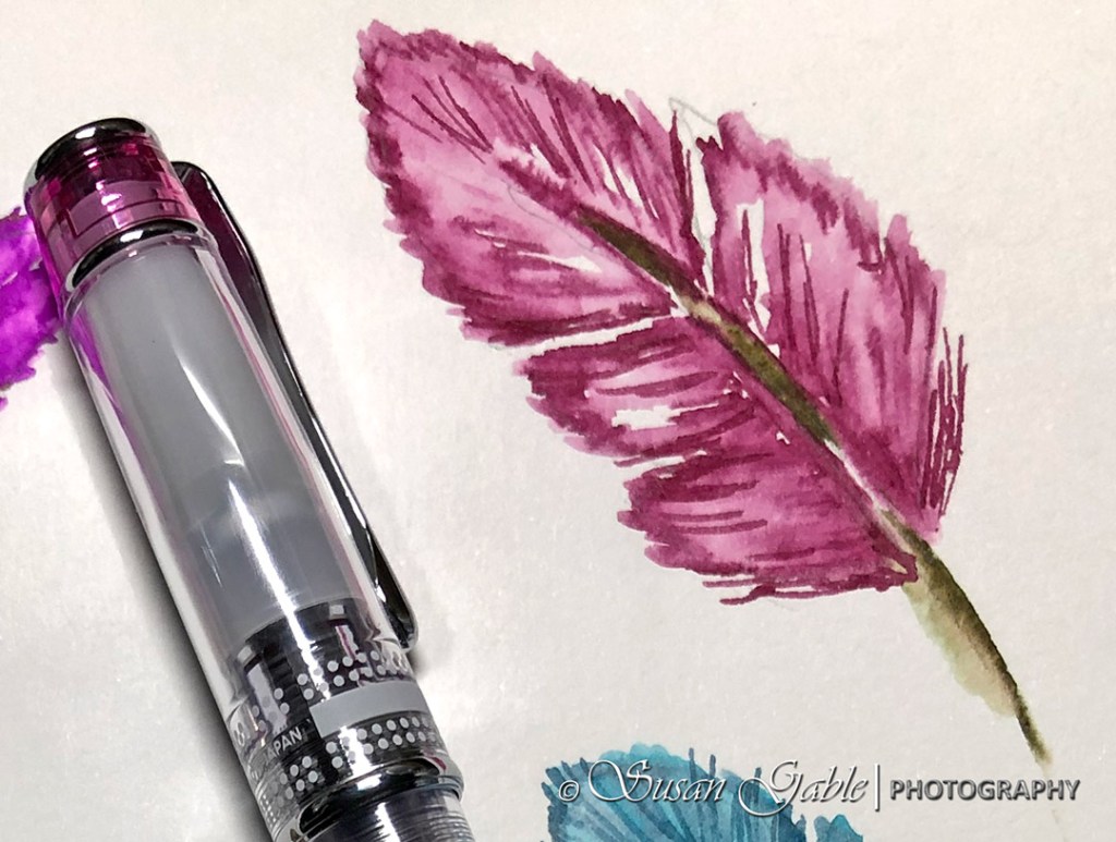 Pen: Pilot Prera in Pink with Calligraphy Medium (CM) nib. Automatic pen and glass dip pen for the swatching