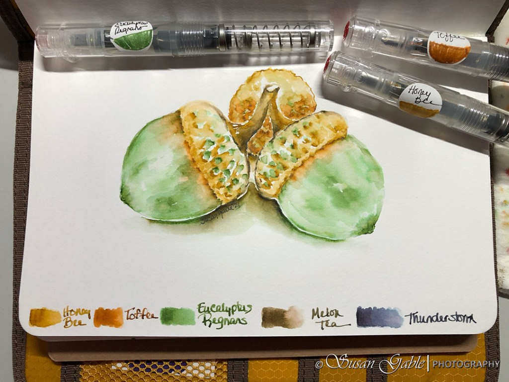 As I mentioned in my previous posts, I’m still trying to use up the remaining Robert Oster inks in my GOs. My Van Dieman’s Inks are patiently waiting for their turn. Can you tell I’m enjoying the Eucalyptus Regnans ink color? It’s showing up in many of my pen and ink artwork. Gorgeous green color.