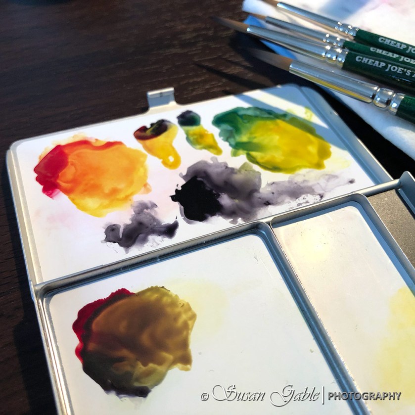 I finally finished my watercolor painting. I know from my previous post I was rather vague or did not show a complete picture of my artwork. I was testing out a new watercolor paper (journal) from Franklin-Christoph and wanted to see how well the paper held up to the copious amount of water and paint I used. Here is my setup from this morning: