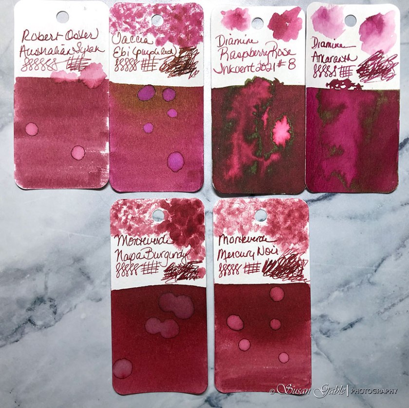 I tend to gravitate towards this red-purple range of colors and have plenty of swatches to compare. This range of colors is perfect for writing and for sketching.
