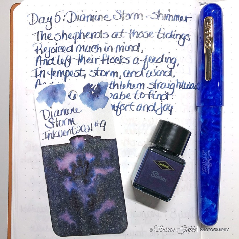 Here is a blue ink color called Storm. It’s appropriately named and has lots of shimmers.