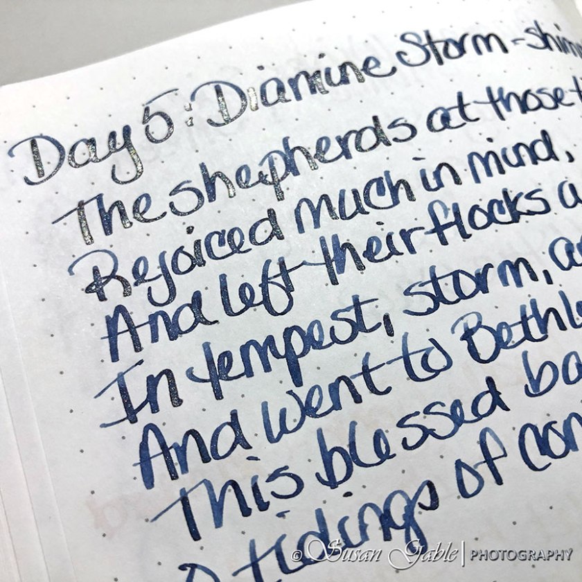I was so thrilled with this ink’s shimmer that I wrote the wrong number for the day. It should be “Day 9” and not Day 5. Ooooops!