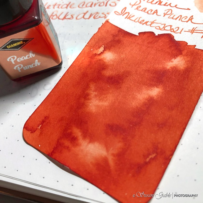 I’m happy to see a few bright ink colors in this Diamine calendar. Peach Punch is a standard ink with some shading. To me, it’s truly a peachy color. I paired this ink with my Conklin All American in Sunburst Orange.