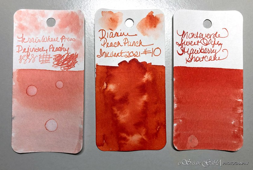 I was sorting through my swatch cards to see what I could find to compare this color to. Strawberry Shortcake was the closest color I had. Just for fun I pulled my FWP Definitely Peachy swatch because it had “peach” in the ink name.