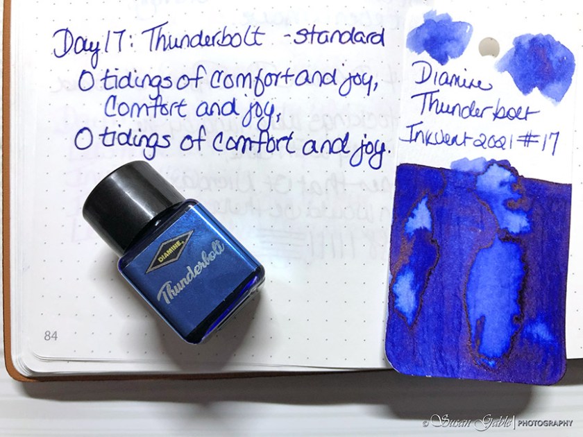 At first, Thunderbolt looks like a regular blue ink color and I thought I would do a quick blog post for this morning. I am apparently wrong about this. This is a bold blue ink that leans a bit towards purple. The color reminds me of Robert Oster’s Dragon’s Night (purple leaning blue). It also reminds me of Diamine Kensington Blue. Thunderbolt sits somewhere in between these two colors.