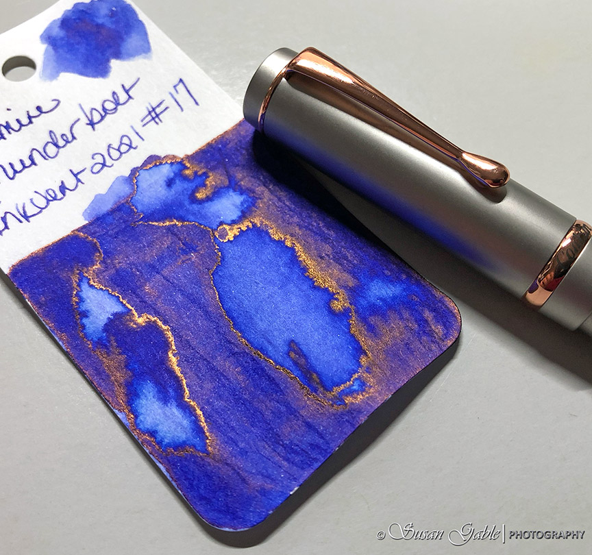 Here’s my Conklin fountain pen with rose gold trim. It could be my pen picks up some of the rose gold sheen. Still, quite an amazing color for a standard ink.