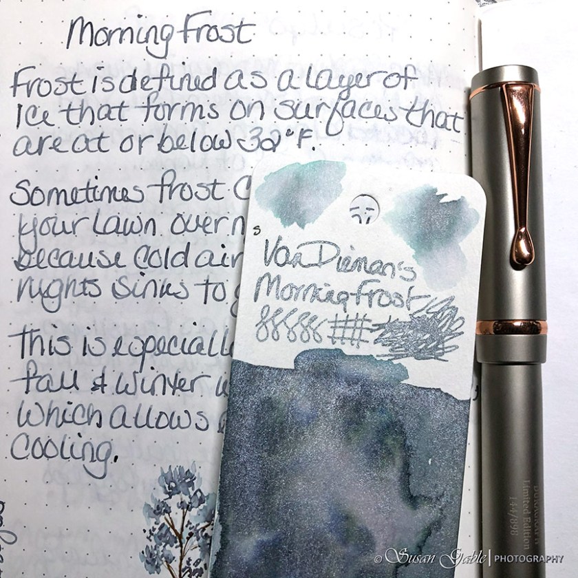 Ink: Van Dieman’s Ink Morning Frost (shimmering) from their Tassie Seasons (Winter) ink series