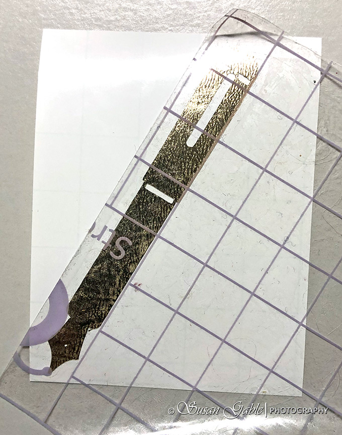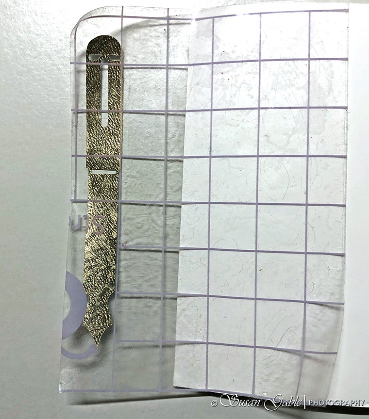I wasn’t sure if I was going to photograph and share pictures of my transfer tape in this blog post. You can see it’s looking a bit abused and had lots of lint stuck to it. I’ve been using this same piece of tape for several projects now and it still has quite a bit of tacky adhesive on it.