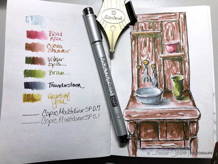 Pens: Copic Multiliner SP in 0.1 and 0.7mm. TWSBI GOs with Stub 1.1 nibs.