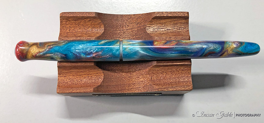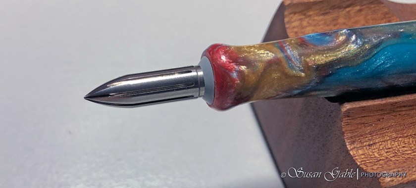 One day, I was perusing my social media feed and stumbled upon a few unique and interesting dip nib holders made from a lovely resin. Lovely swirls of colors with bits of chatoyancy and shimmer.