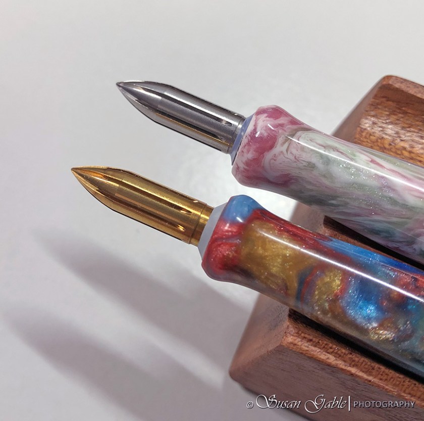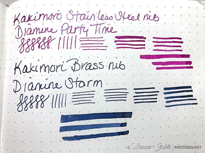 Do I prefer one over the other? It depends. When I’m creating my writing samples, I automatically reach for my stainless steel nib. I need a bit more time to work with both nibs.