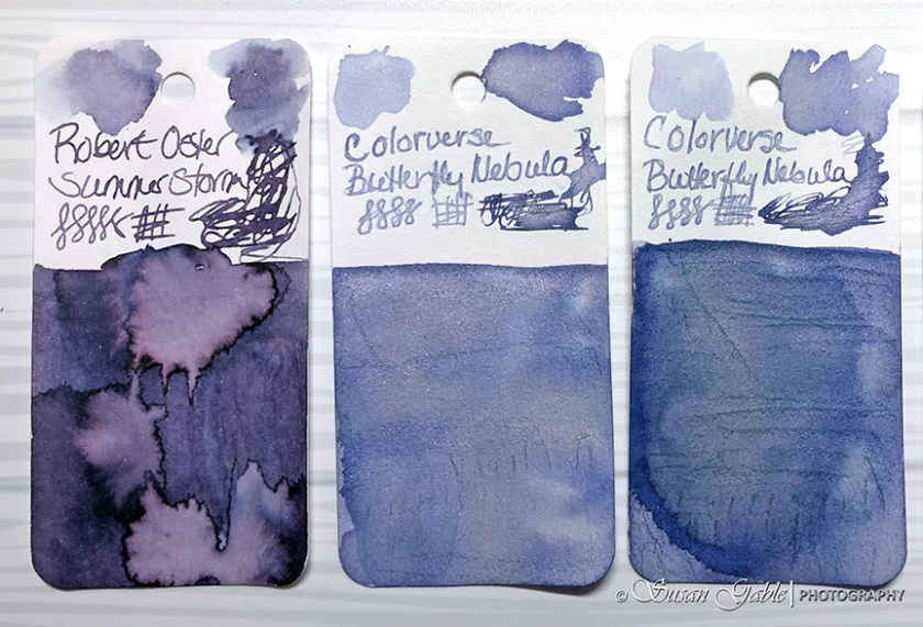 For Butterfly Nebula, the closest color I had was Summer Storm which happens to be much darker and leans a bit more towards pink. I would call Butterfly Nebula a dusty periwinkle (lavender blue) ink color.