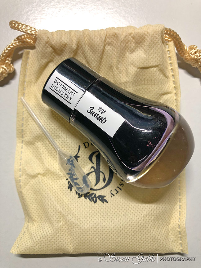 Dominant Industry inks is based in South Korea. They designed the inks for their unique colors and effects. Their 25ml bottles are packaged in a cardboard box and includes a cloth dust bag and a single use pipette.