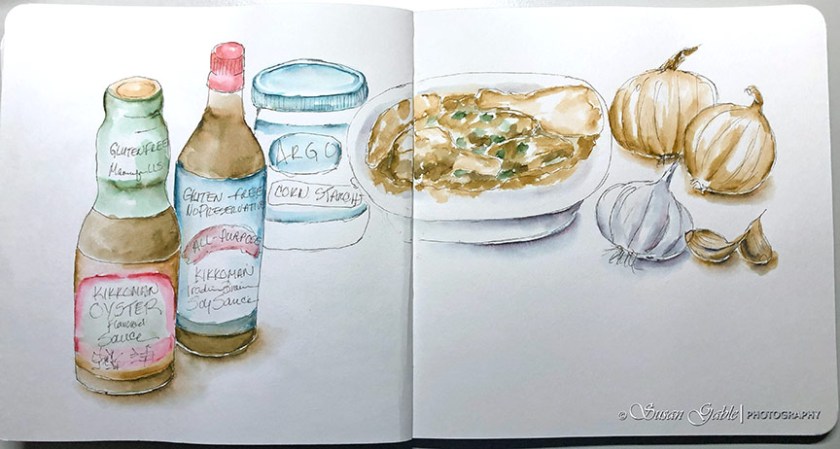 Update (09/04): I started this sketch after I went grocery shopping and I picked up a few bottles of gluten free sauces. The colorful bottles caught my eye and I picked up my pencil and fountain pens and started to sketch.