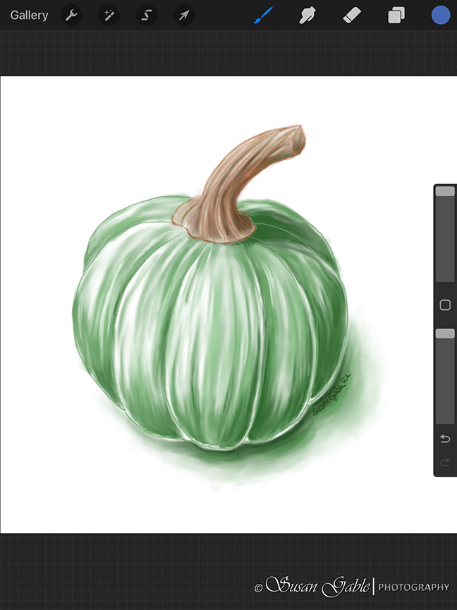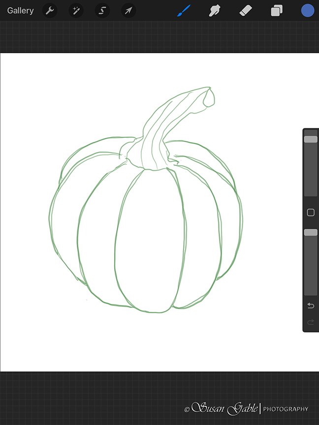 In the meantime, here’s my first official Procreate sketch that I created on my iPad. Yes, it’s another pumpkin sketch.