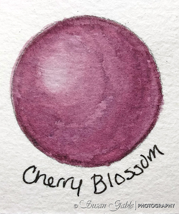 Here’s my favorite shimmering pink ink color, Blood Rose. My painted circle came out bright and lovely. I’ve always enjoyed how this ink reacts to water. It’s a beautiful color to use for floral pen & ink sketches.