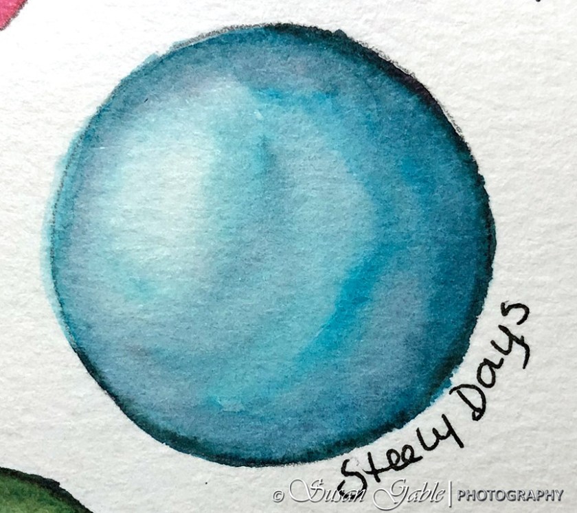 In the following circle, I created an outline for 2/3 of the circle or the edge that’s away from the highlight. This is another beautiful ink with lots of personality. Another favorite of mine called Steely Days.