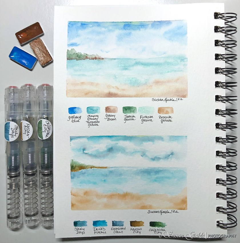 I forgot to mention that I’m using a watercolor journal from Canson for my test sketches. My beach scene sketches are on the backside of the first page. I wanted to see if the backside of this watercolor paper could be used.