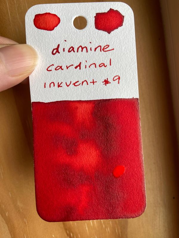 Today’s Diamine Inkvent color is Cardinal. This is a lovely standard medium bright red ink. Here is T’s inky swatch. This appears to be a bold vermilion red color and not much else. Thank you T for taking the time to create and share your swatches with me.