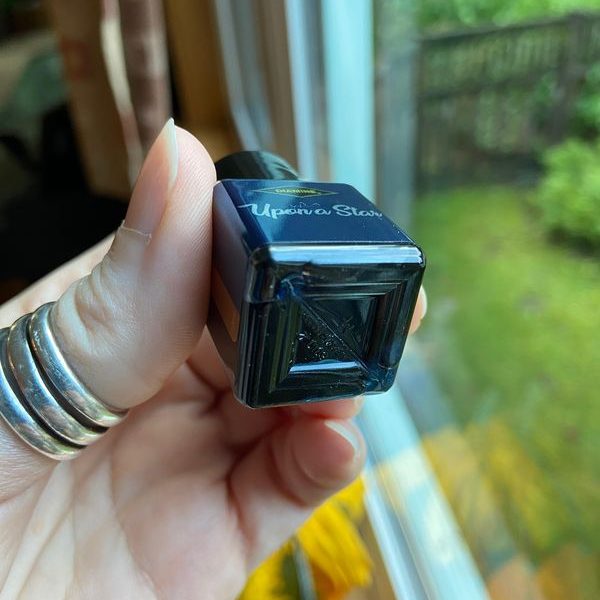 Today’s Diamine Inkvent calendar color is Upon a Star. This is a dark blue chameleon ink. This ink has a cornflower blue undertone with lots of red sheen and green-blue shimmers. Most of swatches I’ve seen have the lovely green shimmers like T’s swatch on the left. I’ve also seen some blue shimmers.