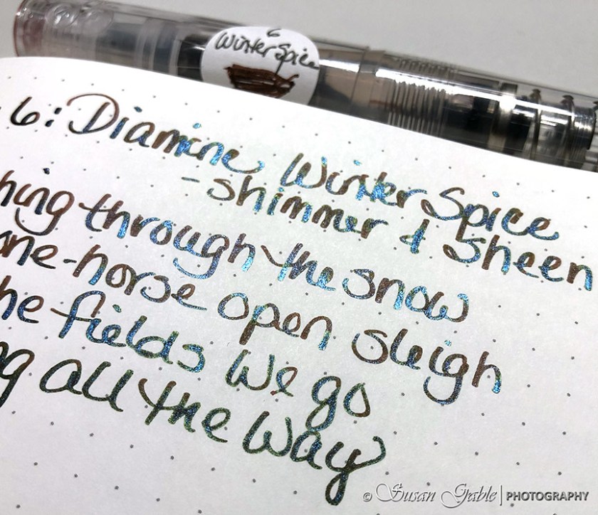 Today’s Diamine Inkvent color is Pick Me Up. This is a scented and sheening ink.