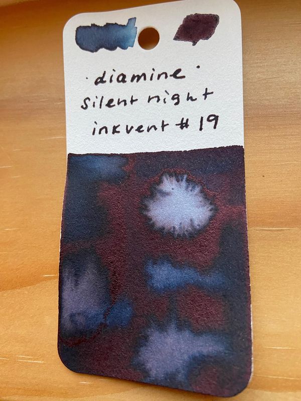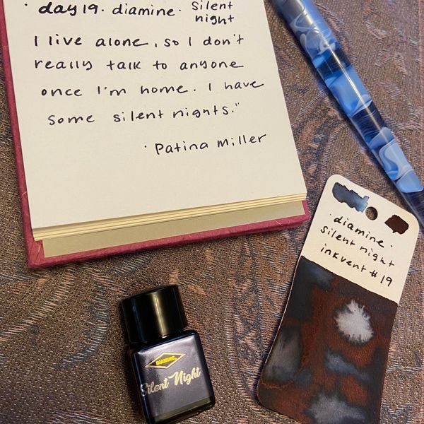 Today’s Diamine Inkvent color is Silent Night. This is a standard dark blue ink color with a some red sheen.