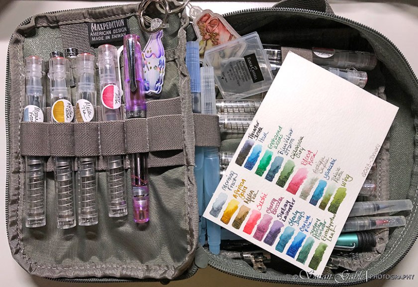 After going back and forth between the two mediums, I knew I would not enjoy our trip if I could not decide what main art medium to use to capture our adventures. I decided it was best to bring my fountains pens and inks in my Maxpedition case. I used my Rickshaw case to carry just the essentials when I was out and about with my slender messenger bag.