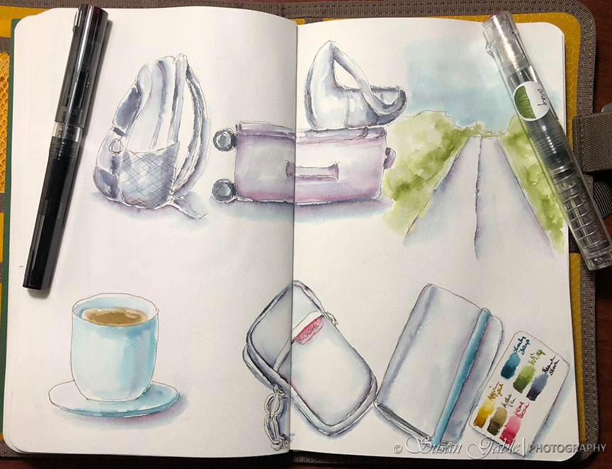 I thought about how I wanted to record this journey. Do I bring my watercolor paints and brushes? Or do I bring my fountain pens and inks? Or do I bring both?