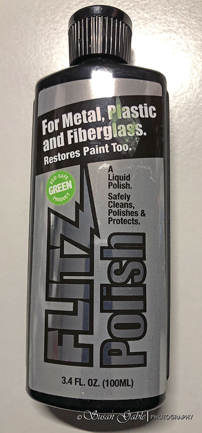 Now that I knew my Featherweight was sewing beautifully, it was now time to start cleaning my machine. I decided to start with the chrome pieces that I had access to. I went to my local mom and pop hardware store and was shown various bottles of chrome polish. I gravitated towards this Flitz branded polish as it was advertised as eco-safe, acid-free, non-toxic, and a non-flammable polish that contains no ammonia or abrasives.