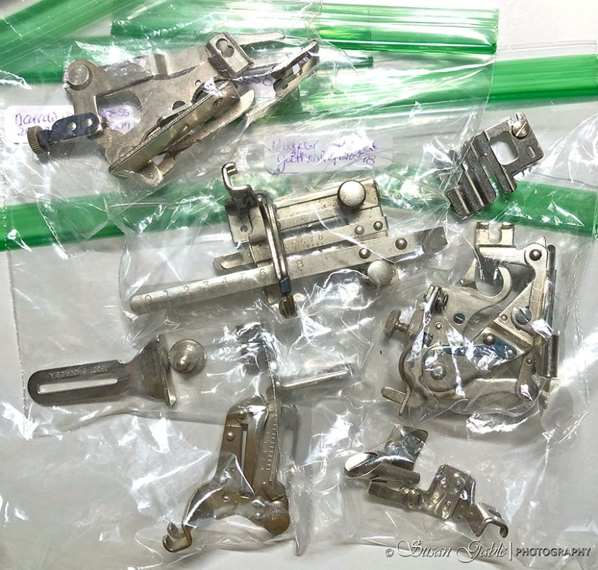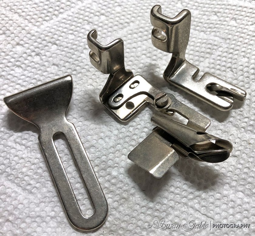 I was able to clean up a few of the vintage feet that came with my machine. I forgot to take a before picture. Trust me when I say the pieces had lots of grime and rust spots.