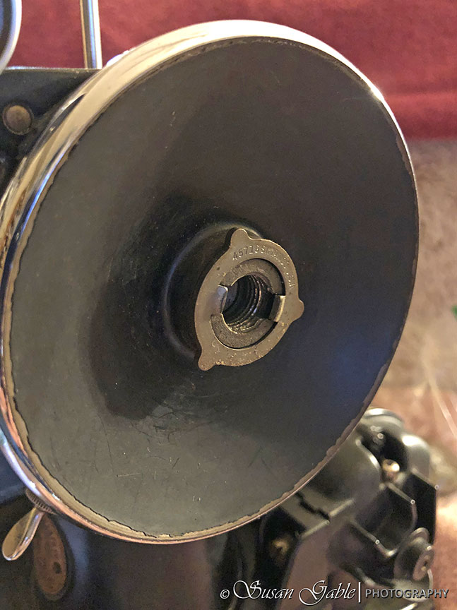 Waxes/Polishes/Oils: Flitz metal polish used on the nickel, chrome, and brass items. Sew-Retro sewing machine oil used to lubricate the moving parts and in the oil holes of my machine. Sew-Retro grease used on the gears and to fill the grease tubes in the motor. Sew-Retro Clean used to clean the black painted areas. Sew-Retro Shine wax to protect the black painted areas.