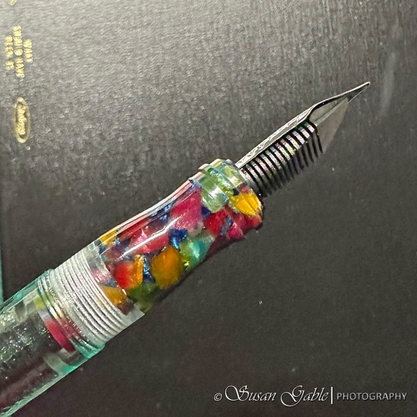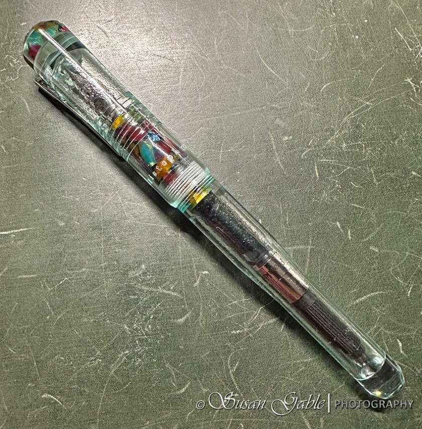 More than likely it’s the pen’s unique and beautiful resin that catches my eye first. The pen could have sparkly bits or swirls of dramatic colors. A minute or two will pass and then I realize the shape or size of the pen is not to my liking or it’s missing a key feature.