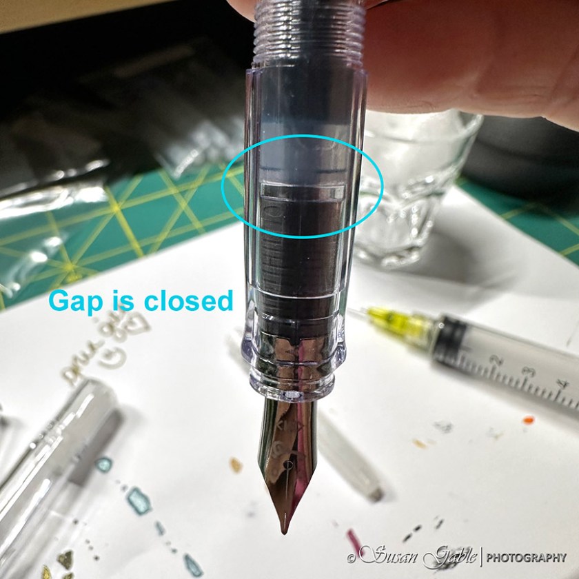 With my cartridge filled, I’m ready to slide the section (nib/feed) over it.