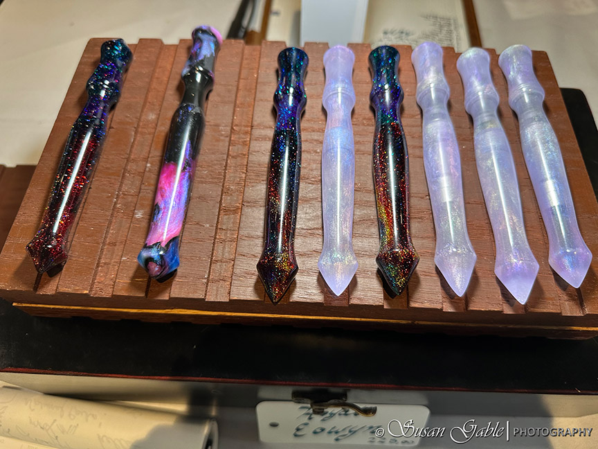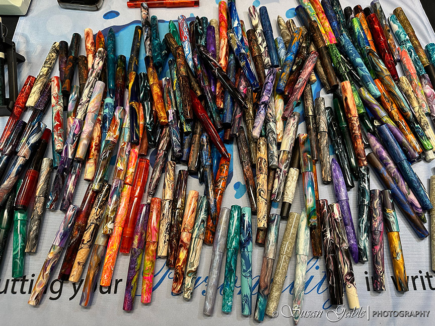 I had purchased a Mayfair pen when Ben had one of his online weekend Mayfair Drop events. I already knew that he made quality fountain pens. I was amazed to see his pens in person. They are a work of art. I highly recommend a visit to his table.