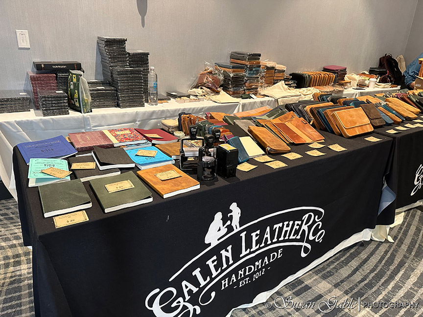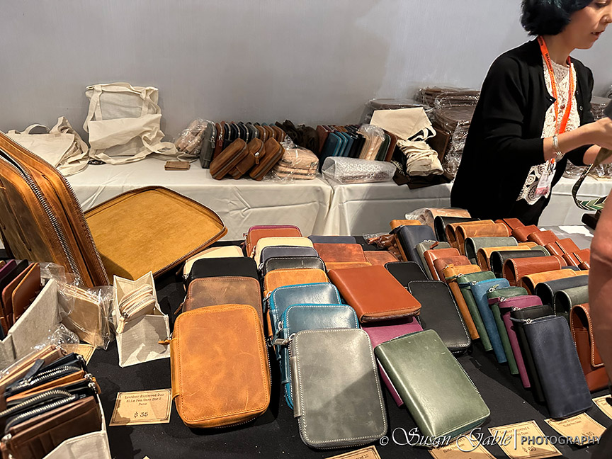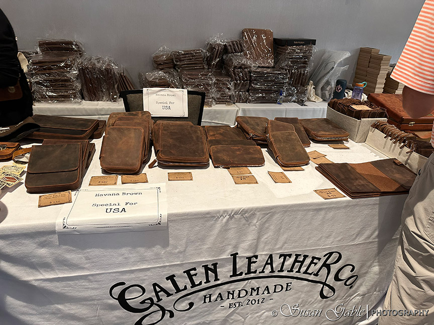 I made my way back to the first room and found Galen’s tables were full of colorful leather goods in different offerings, sizes, and shapes. Oh my! It was a good thing I had my blinders on and focused on my wish list item.