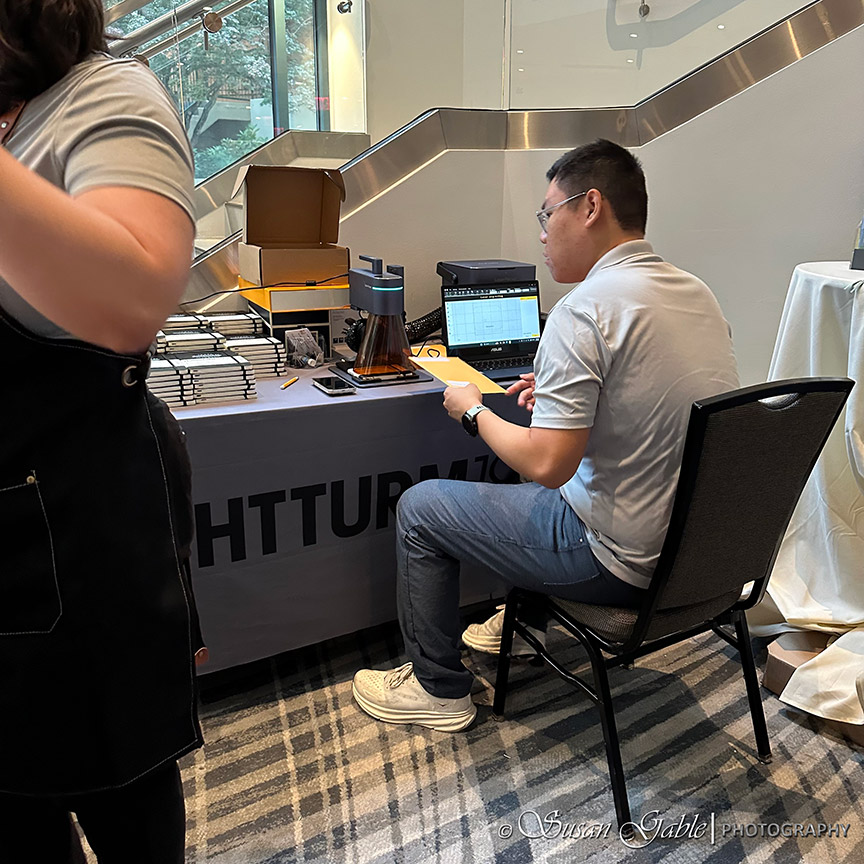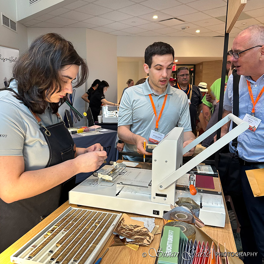 My first stop was Leuchtturn’s table at the bottom of the stairs in room #4. I stood in a short line along with my fellow Weekend Traders patiently waiting to receive our special pen show journal and have it engraved. It was an interesting engraving system they used.