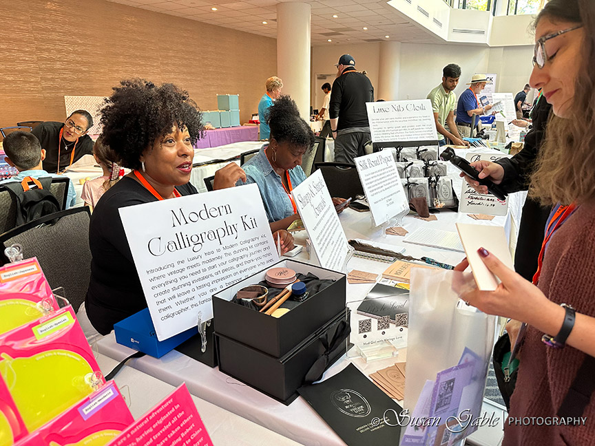 I went back at Blick’s table to pick up a few bottles of Colorverse inks I saw on Friday. I also spent some time looking at the brands they carried, looking at their swatch cards, and admiring the pens they brought to the show.