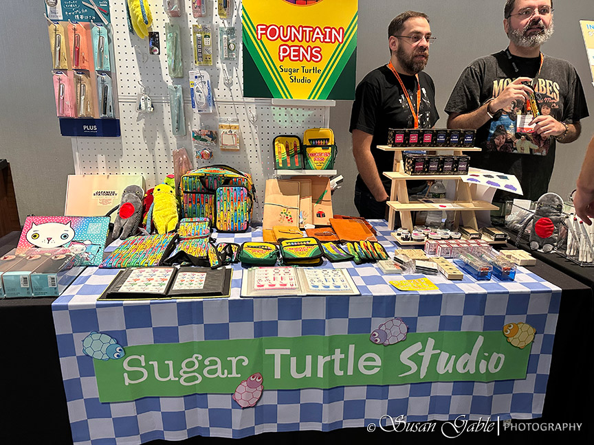 Later, I would come back to Frank’s table and purchase a bottle of Colorverse Horsehead Nebula. This is what happens when I see a colorful swatch at an exhibitor’s table to find the bottle of ink is sold out. Then I have to quickly go through all the exhibitor’s I’ve seen physically in the many rooms or on a list online and start my search. I’ve gotten into a good habit of visiting Frank’s table first for Robert Oster and Colorverse inks. The next exhibitor that had Robert Oster inks is at the Orlando Pen Show table.