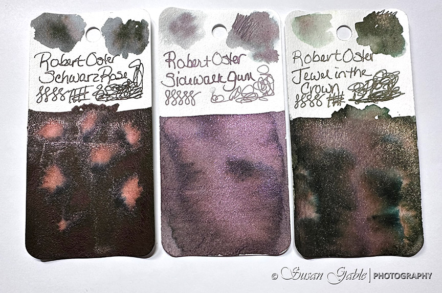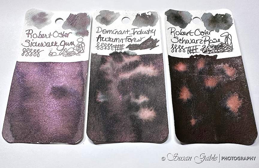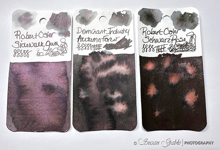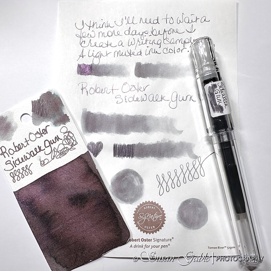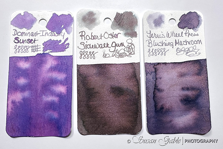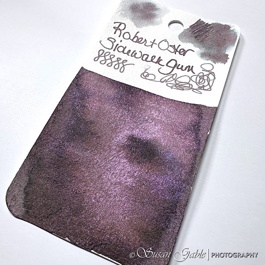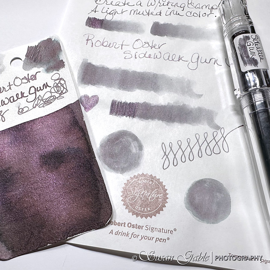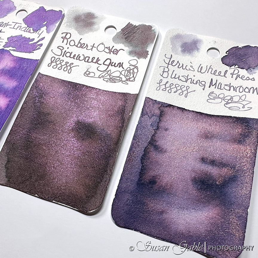 I’ve been looking at this Sidewalk Gum ink color since late last year. It looks like a dusty/muted purple-ish gray ink with lots of purple-pink shimmers. This exclusive ink was created to celebrate Atlas Stationers sidewalk sale and capturing bubblegum stuck on a sidewalk.