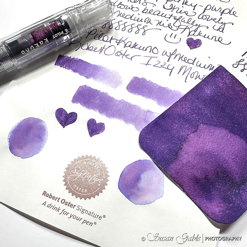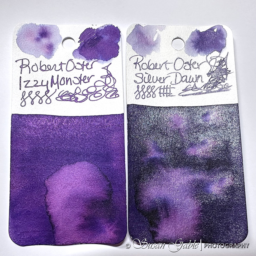 I already knew I had a similar Robert Oster purple ink color called Silver Dawn. Silver Dawn has silvery shimmers which makes the ink look a bit lighter depending on the lighting.