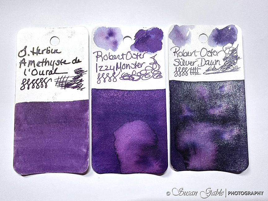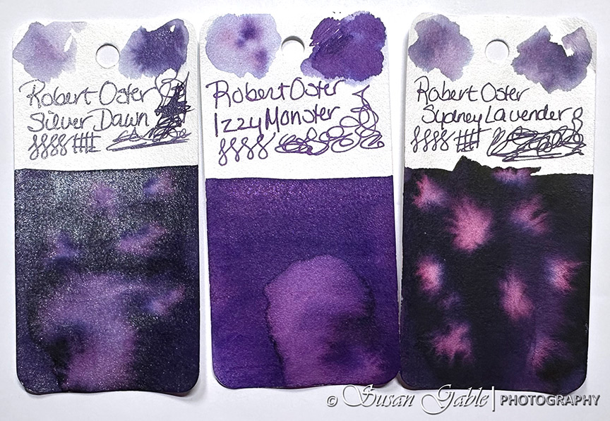 Here’s my three favorite Robert Oster purple inks together. They are very similar yet very different. They have different personalities and of course, Sydney Lavender has no shimmers.